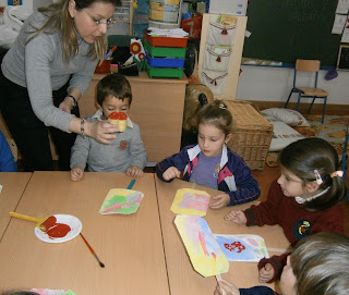 Primero había que pintar el fondo con colores al gusto de cada artista y lo hicimos empleando pinturas muy, pero que muy aguadas.